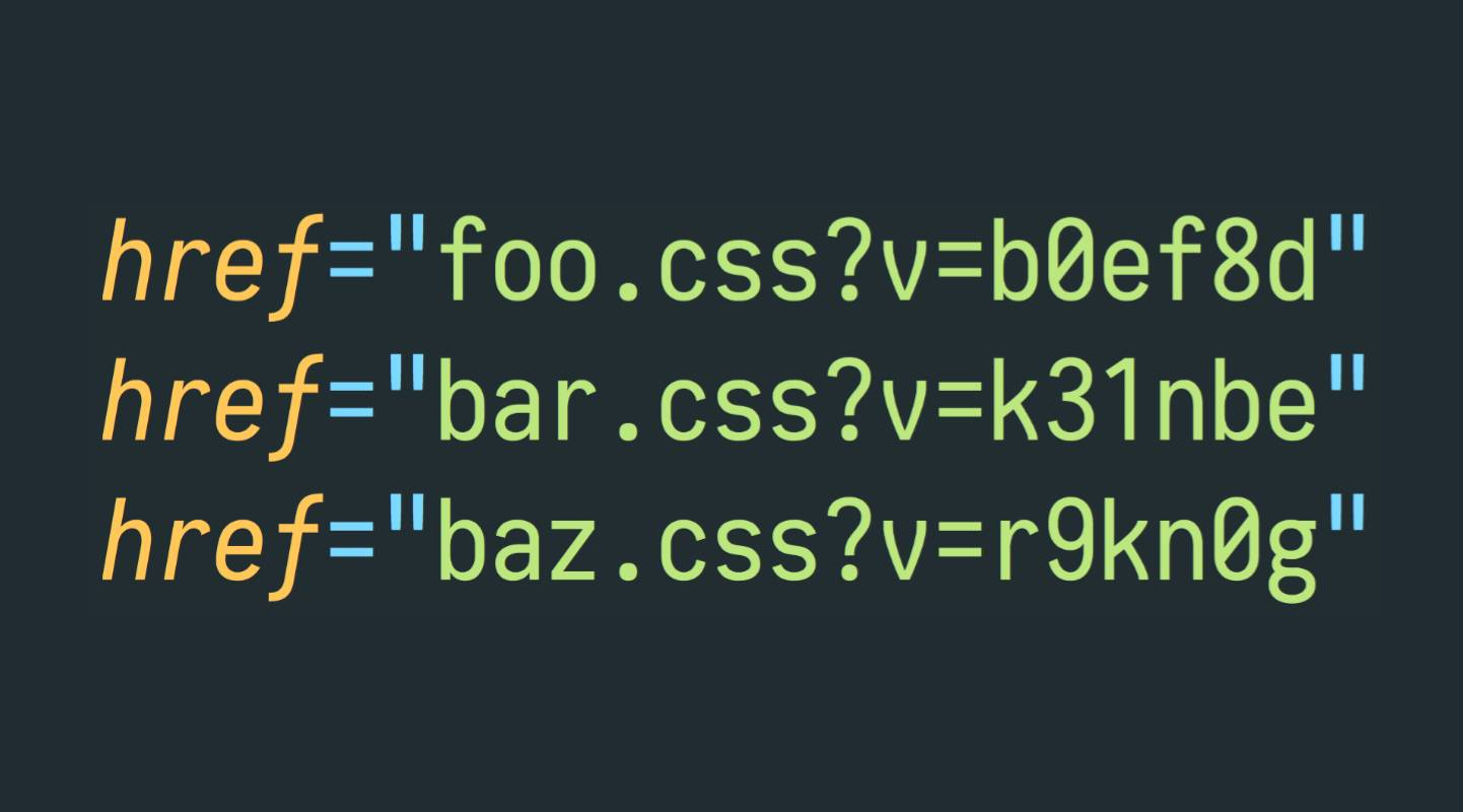 因为它更新的时候就会改版本号,这个时候浏览器知道这个缓存已经失效,那么重新从服务器拉一次。但是,我们刚刚也说,我们会有很多文件,很多静态资源,如果现在 foo.css 改的话,我的项目版本号就会更新,我依然会把所有其它资源的版本号改一遍。这意味着虽然我只更新一个文件,但是所有的文件都需要重新下载,这样很浪费。我们如何更新一个文件,让用户只下载一个文件,我们如何实现精确一个文件粒度的更新呢?我们会想一个想法,能不能让资源后缀和资源内容关联起来,如果内容没有变化的话,我们后面的一个后缀就不改变了;如果有改动,我们就把后面的戳改动。这里有一个算法就是数据摘要算法,这个算法大家听的比较少,如果我把这些名词列出来,你们就可能会知道:MD5、SHA1、 SHA256。这些算法会根据不同的文件内容来生成不同的 hash。我们把它加在后面是这个样子。这个时候我们发现如果它的文件内容改了,这样我们精确到文件的力度去更新代码。