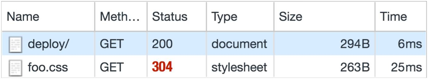 我们从最简单的页面开始,这是一句话而已,我们引用了一个 foo.css,它只是给背景加了一个颜色而已。如果放到浏览器里面它的请求看起来会是怎样的?大家都经常看见,foo.css 的状态码是 200,一切看起来很完美。