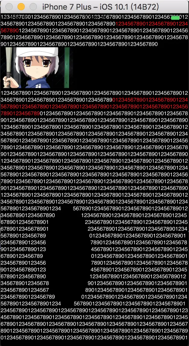NSMutableAttributedString * attributeStr = [[NSMutableAttributedString alloc] initWithString:@"123456789012345678901234567890123456789012345678901234567890123456789012345678901234567890123456789012345678901234567890123456789012345678901234567890123456789012345678901234567890123456789012345678901234567890123456789012345678901234567890123456789012345678901234567890123456789012345678901234567890123456789012345678901234567890123456789012345678901234567890123456789012345678901234567890123456789012345678901234567890123456789012345678901234567890123456789012345678901234567890123456789012345678901234567890123456789012345678901234567890123456789012345678901234567890123456789012345678901234567890123456789012345678901234567890123456789012345678901234567890123456789012345678901234567890123456789012345678901234567890123456789012345678901234567890123456789012345678901234567890123456789012345678901234567890123456789012345678901234567890123456789012345678901234567890123456789012345678901234567890123456789012345678901234567890123456789012345678901234567890123456789012345678901234567890123456789012345678901234567890123456789012345678901234567890123456789012345678901234567890123456789012345678901234567890123456789012345678901234567890123456789012345678901234567890123456789012345678901234567890123456789012345678901234567890123456789012345678901234567890123456789012345678901234567890123456789012345678901234567890123456789012345678901234567890123456789012345678901234567890123456789012345678901234567890123456789012345678901234567890123456789012345678901234567890123456789012345678901234567890123456789012345678901234567890123456789012345678901234567890123456789012345678901234567890123456789012345678901234567890123456789012345678901234567890123456789012345678901234567890123456789012345678901234567890123456789012345678901234567890123456789012345678901234567890123456789012345678901234567890123456789012345678901234567890123456789012345678901234567890123456789012345678901234567890123456789012345678901234567890123456789012345678901234567890123456789012345678901234567890123456789012345678901234567890123456789012345678901234567890123456789012345678901234567890123456789012345678901234567890123456789012345678901234567890123456789012345678901234567890123456789012345678901234567890123456789012345678901234567890123456789012345678901234567890123456789012345678901234567890123456789012345678901234567890123456789012345678901234567890123456789012345678901234567890123456789012345678901234567890123456789012345678901234567890123456789012345678901234567890123456789012345678901234567890123456789012345678901234567890123456789012345678901234567890123456789012345678901234567890123456789012345678901234567890123456789012345678901234567890123456789012345678901234567890123456789012345678901234567890123456789012345678901234567890123456789012345678901234567890123456789012345678901234567890123456789012345678901234567890123456789012345678901234567890123456789012345678901234567890123456789012345678901234567890123456789012345678901234567890123456789012345678901234567890123456789012345678901234567890123456789012345678901234567890123456789012345678901234567890"];