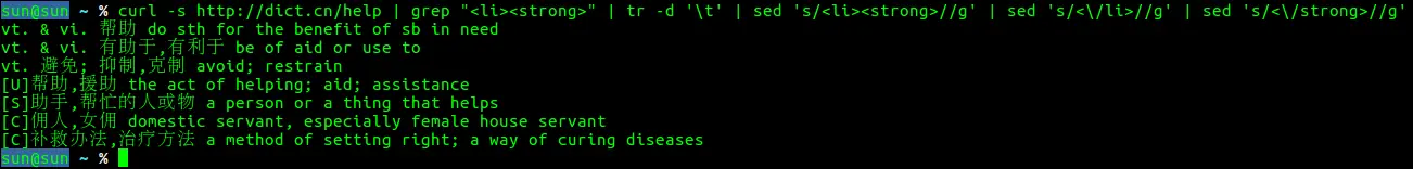 curl http://dict.cn/help | grep "<li><strong>" | tr -d "\t"