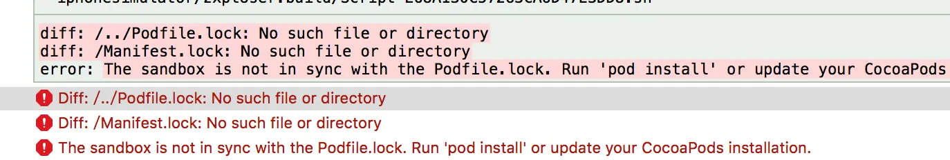 5:更新PODS后,报diff: /../Podfile.lock: No such file or directory 错误