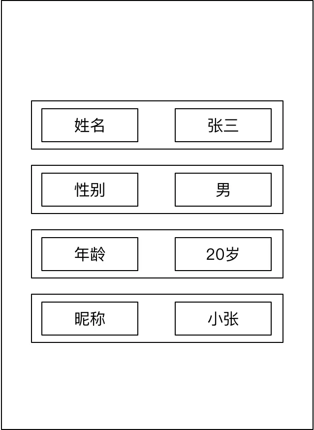 方案2(推荐):将左侧的title和右侧的value,以list(key-value)的数据形式进行下发,优点:左,右侧文案灵活配置,后期如果需要扩展,新增或删除一个条目,都可以通过后端控制。不过采用这种形式,也需要考虑实际场景,对于变化不那么比较频繁,数据item较少,较固定的情况下其实没有必要设计的太灵活,只会增加开发成本。