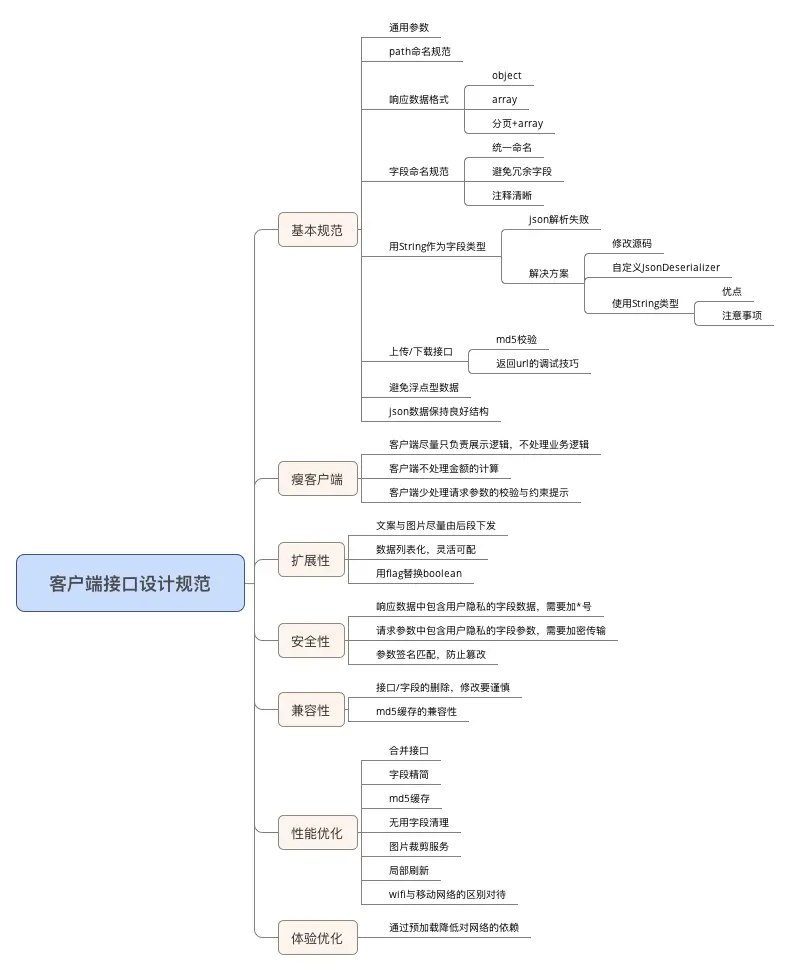 众所周知,客户端任何的修改都是需要发版的,特别是IOS需要走AppStore的审核流程。为了修一个bug,仅仅改几行代码,而重新走一轮发版流程,是很劳命伤财的。所以在接口设计的时候,也需要适当考虑这点,将业务重心交由后端,客户端保持逻辑简单。