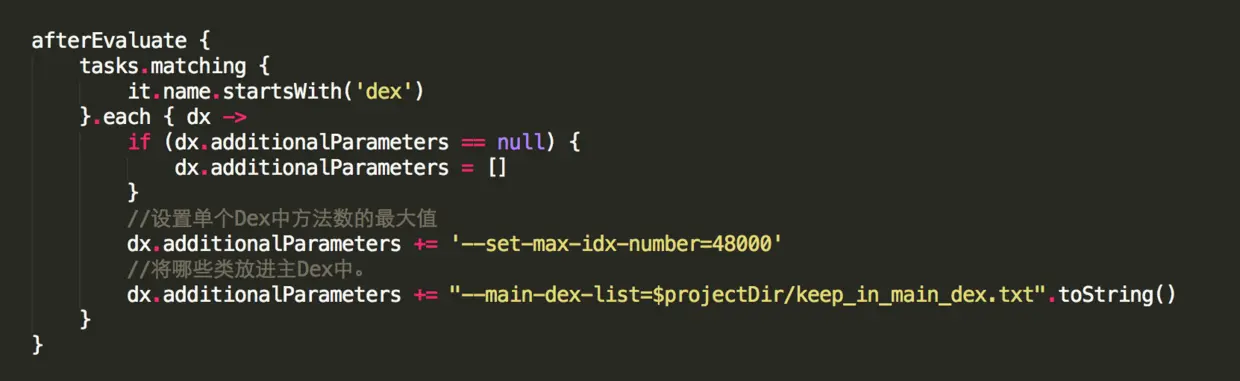 }干预打包流程,保证入口类以及入口类的引用类都放在主Dex中。