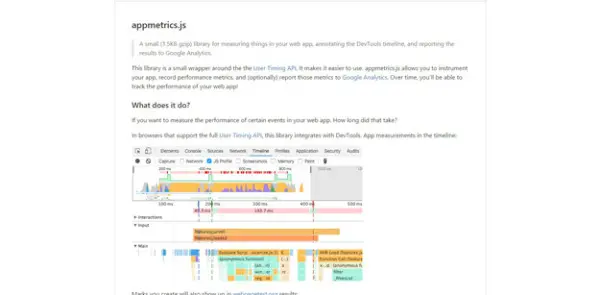 Appmetrics.js 是一个用来测量 Web 应用程序的小型 JS 库,并把结果报告发送到 Google Analytics 上。