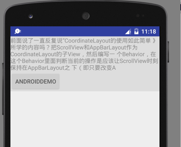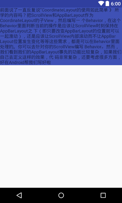 这时候我们给FrameLayout加上android:background="@color/colorPrimary"。效果变成这样: