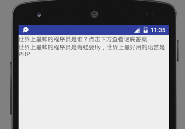 android:text="世界上最帅的程序员是青蛙要fly,世界上最好用的语言是PHP" />