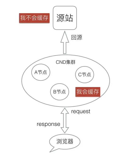 - CDN会缓存response,源站不会。