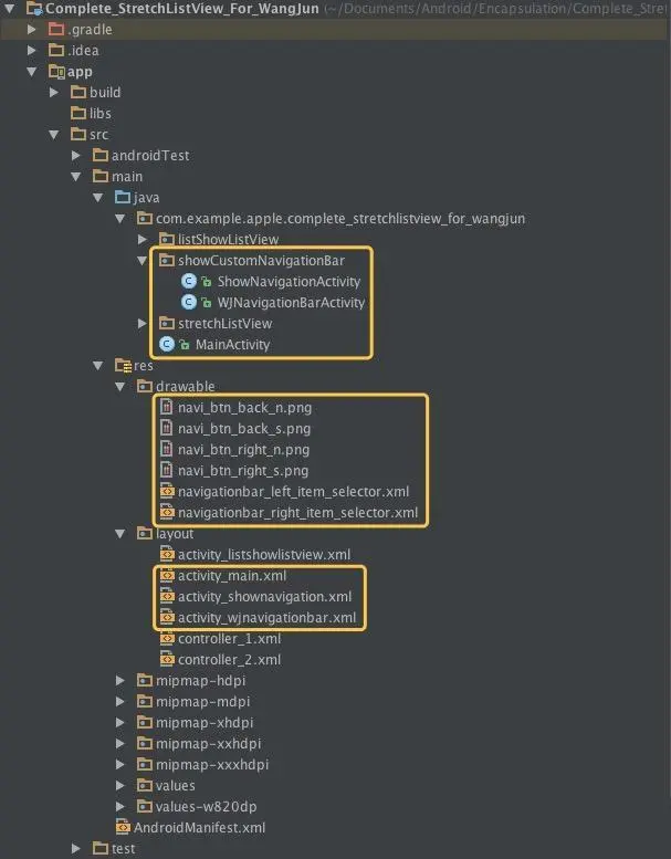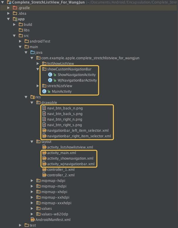 ShowNavigationActivity:展示自定义Navigation的类(iOS中可以理解为在ViewController中调用)