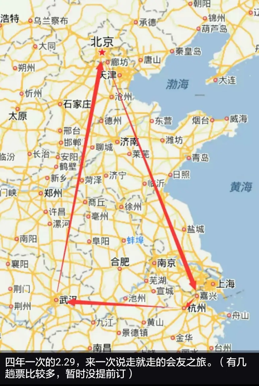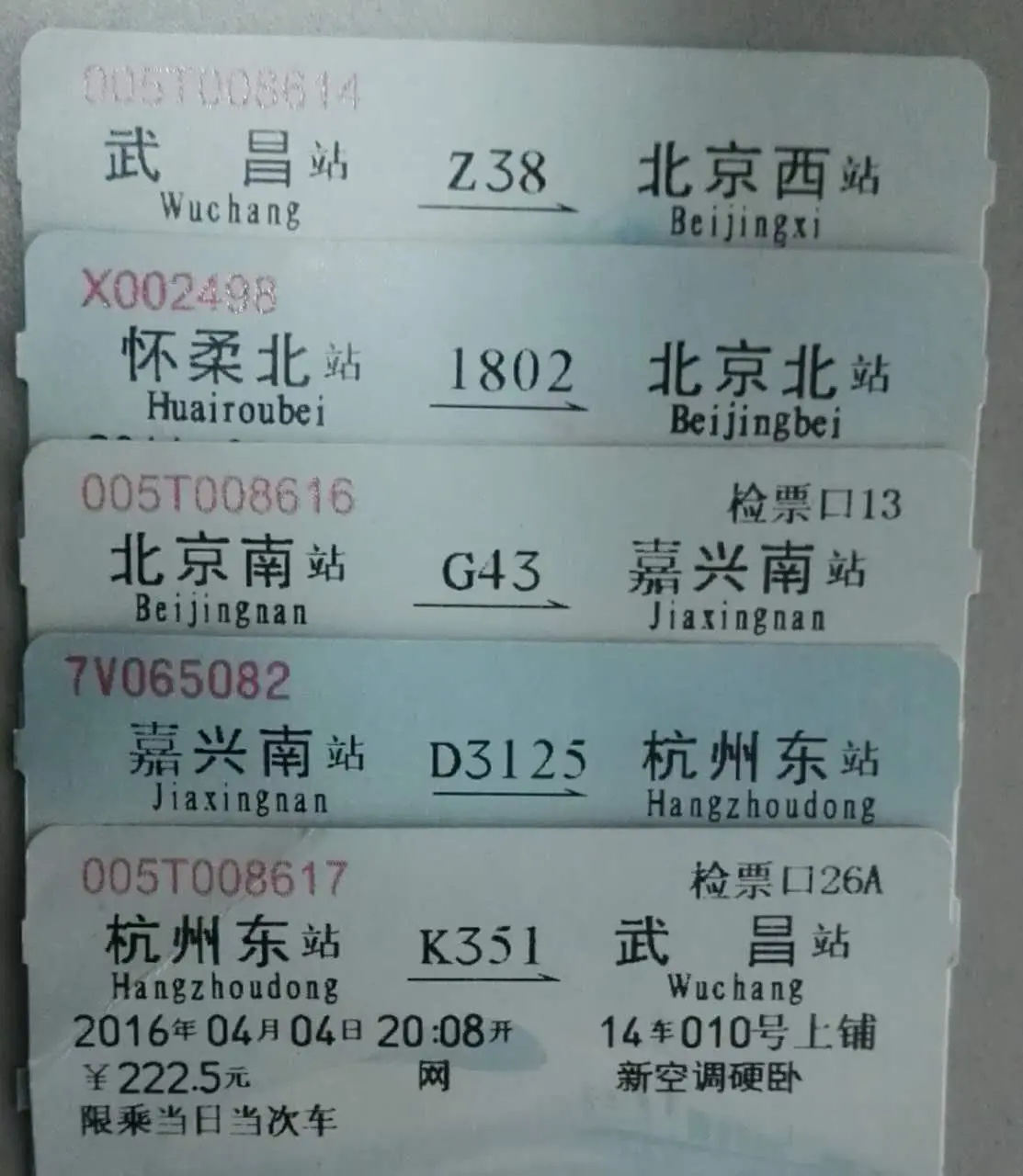 后来是四年一次的 2.29,本科的同学各奔东西,我想看看大家的近况,所以二话没说直接买了清明节前后的票去看了下现中科院,浙大读研的同学,交换了下毕业半年的见闻,这是路线图和车票: