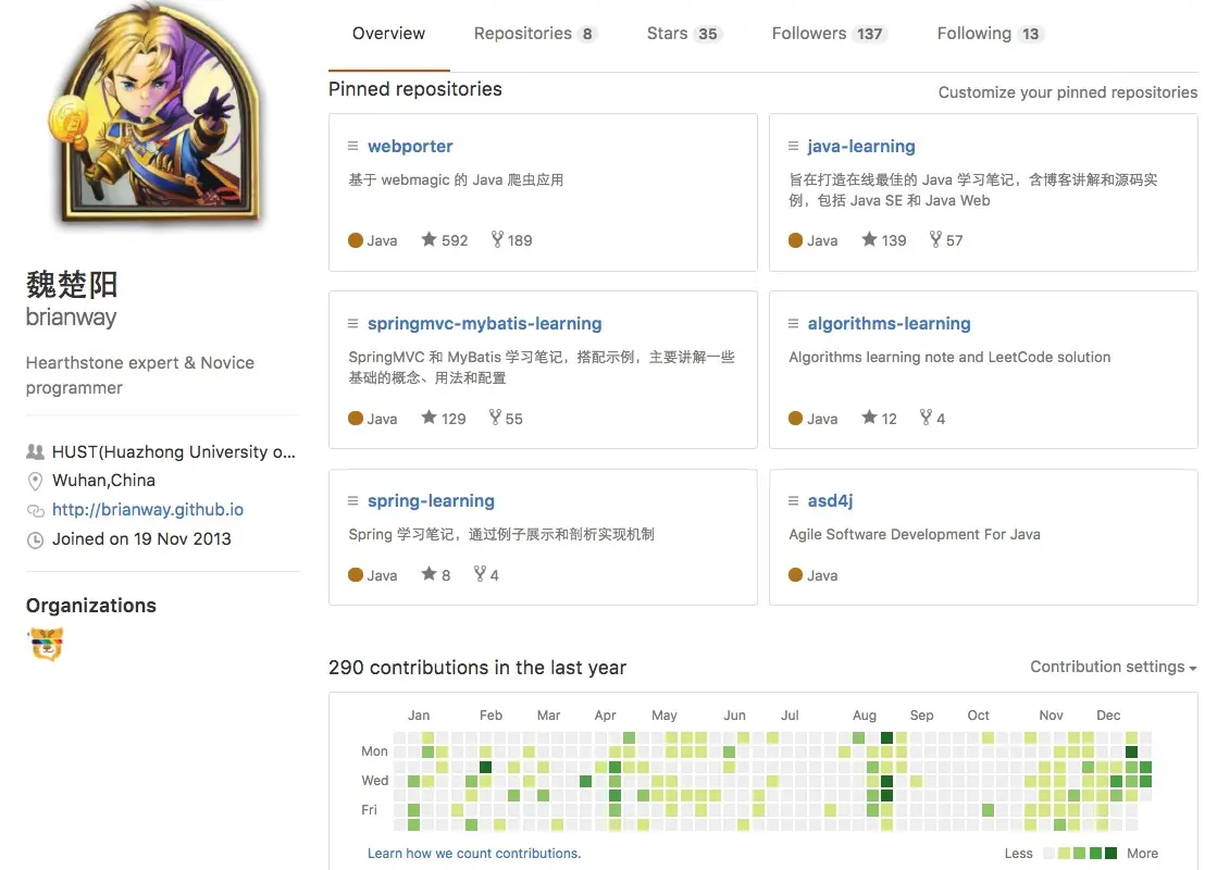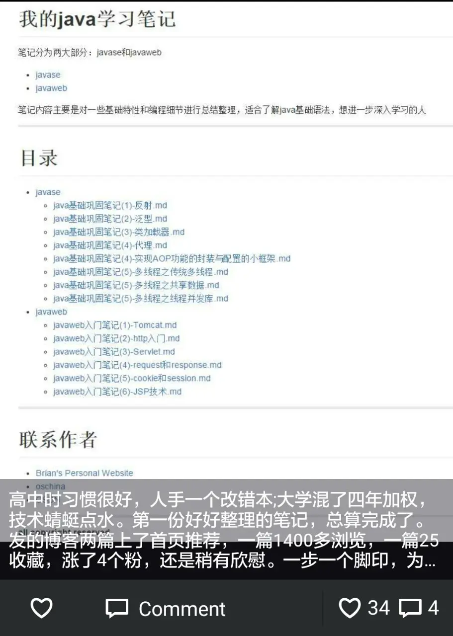 寒假的时候,我用假期刷完了网上盛传的某马培训班 Java 基础视频,整理的自己的学习笔记 github.com/brianway/ja…,这是当时的朋友圈