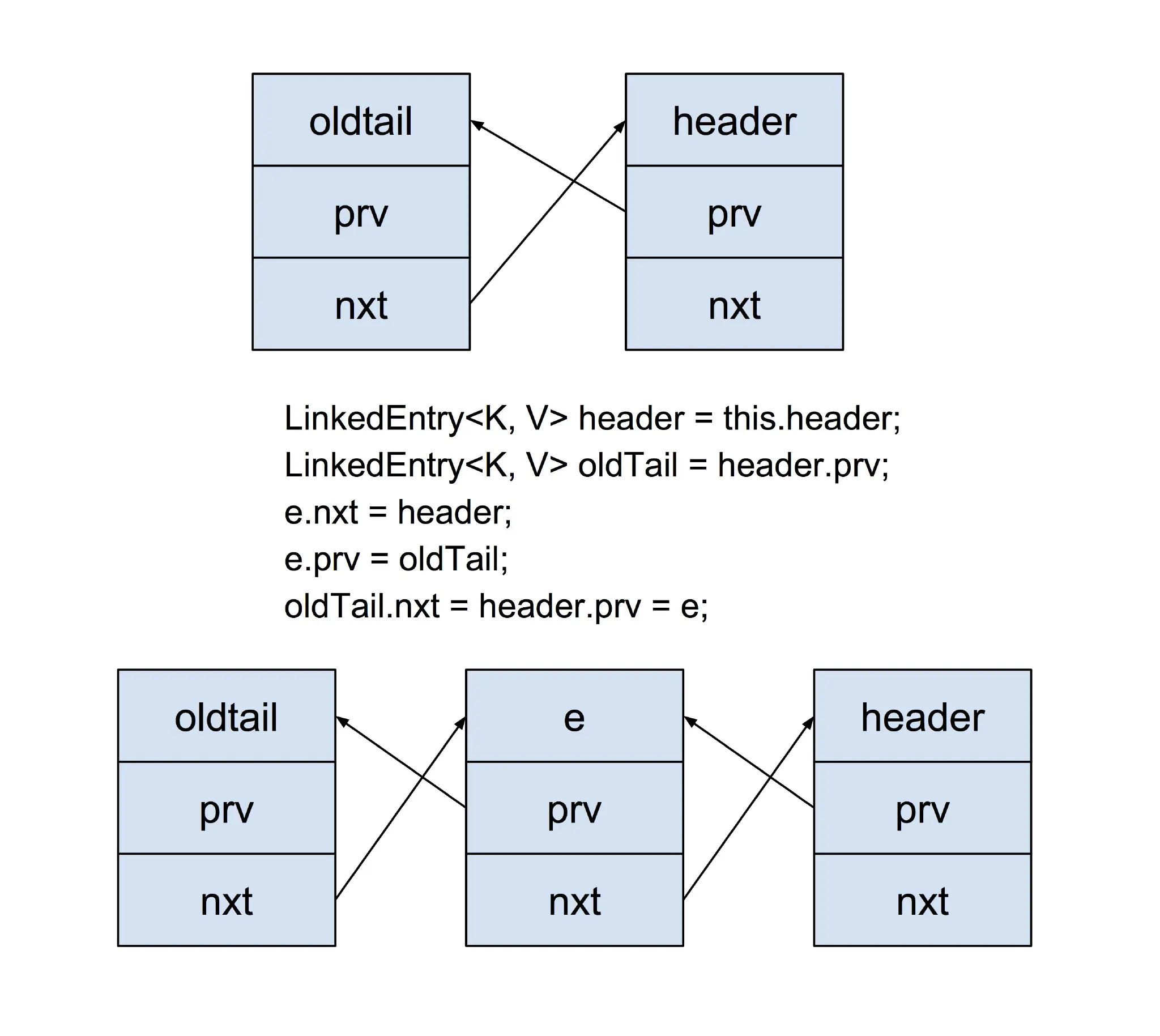 LinkedEntry oldTail = header.prv;