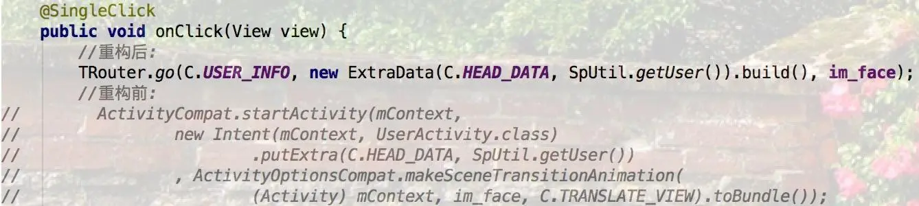 TRouter.go(C.USER_INFO, new ExtraData(C.HEAD_DATA, SpUtil.getUser()).build(), im_face);
