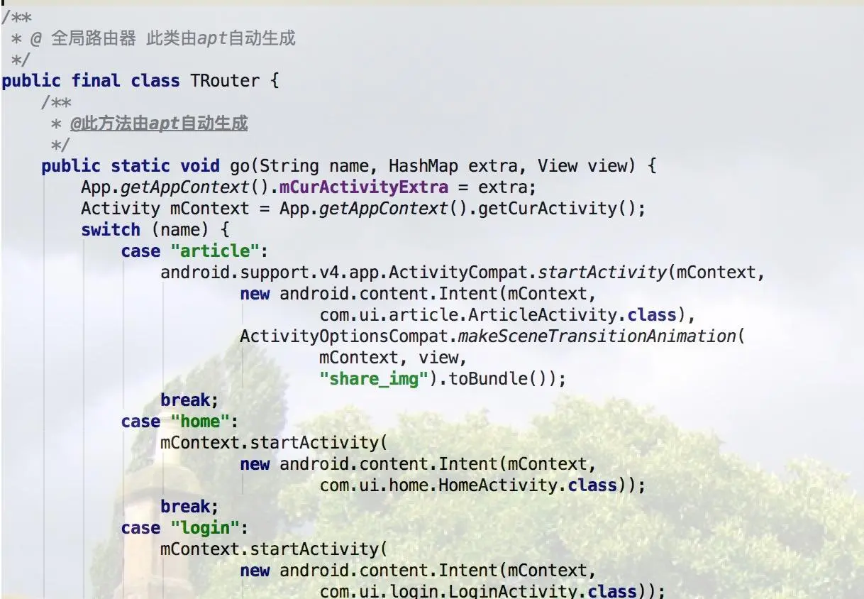 2016/12/30:使用Apt生成全局路由TRouter,更优雅的页面跳转,支持传递参数和共享view转场动画