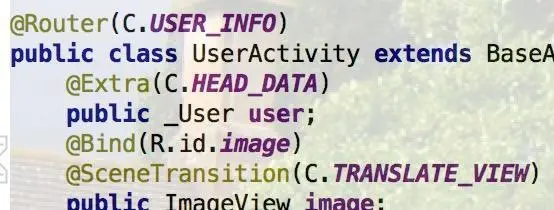2、@Extra(C.HEAD_DATA)注解标注上个界面传进来的参数user信息,注解内的值就是取值时的key。