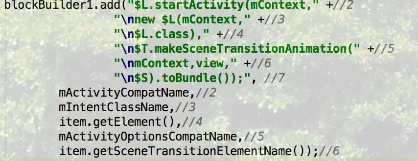 以及自动给目标Activity自动初始化传参和转场View的代码: