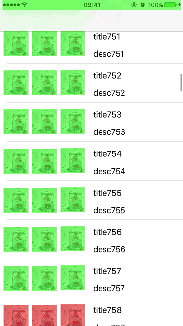 当 UIView.layer.shouldRasterize = YES 时,耗时的图片绘制会被缓存,并当做一个简单的扁平图片来呈现。这时候,如果页面的其他区块(比如 UITableViewCell 的复用)使用缓存直接命中,就显示绿色,反之,如果不命中,这时就显示红色。红色越多,性能越差。因为栅格化生成缓存的过程是有开销的,如果缓存能被大量命中和有效使用,则总体上会降低开销,反之则意味着要频繁生成新的缓存,这会让性能问题雪上加霜。