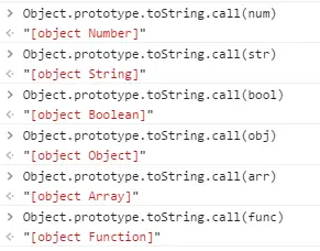 使用Object.prototype.toString.call()方法调用将返回数据类型数组;