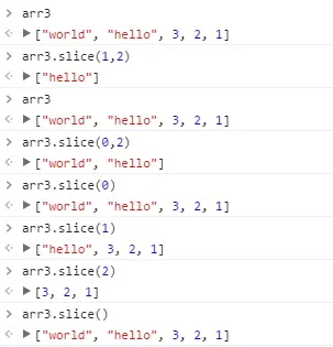 slice:提取原数组一部分,可传2个参数,第一个为起始位,第二个是结束位(不包含该位的元素),返回新数组,不改变原数组;