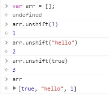 unshift:从数组第一位添加元素,返回新的数组长度,改变原数组;