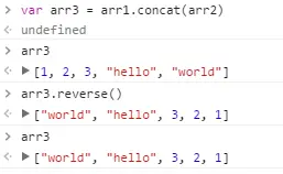 concat:实现多个数组合并,返回新数组,不改变原数组;