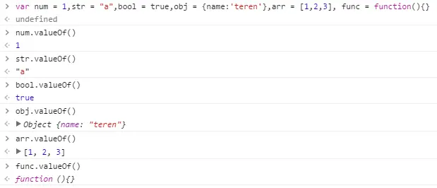 很好理解的是valueOf()方法就是返回实例的值,实例是什么数据类型值就返回什么类型;