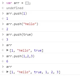 push:从数组最后一位添加元素,返回新的数组长度,改变原数组;