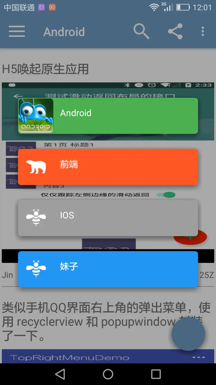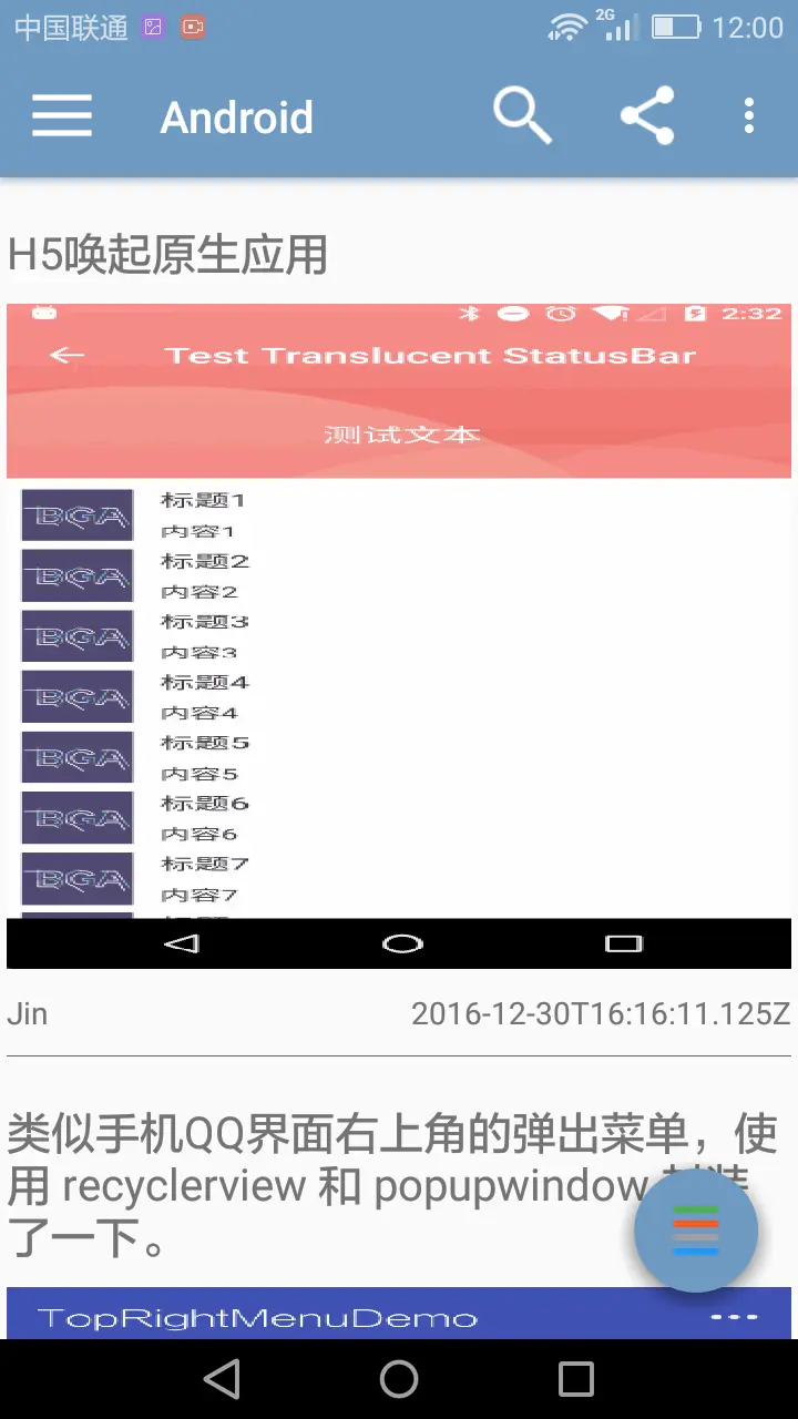 4)自定义控件:如 妹子浏览控件,圆形控件,boomMenu,高斯模糊等5)第三方库:GSON,Butterknife等等