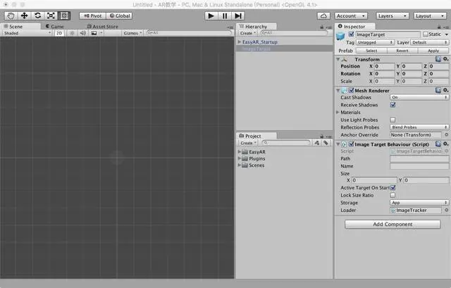 在上一课程中,我们搭建了EasyAR 开发的基本环境,在本课程中,我们在第一课时的基础上创建一个AR模型并使其旋转起来,顺便带大家复习一下上一课时的知识。