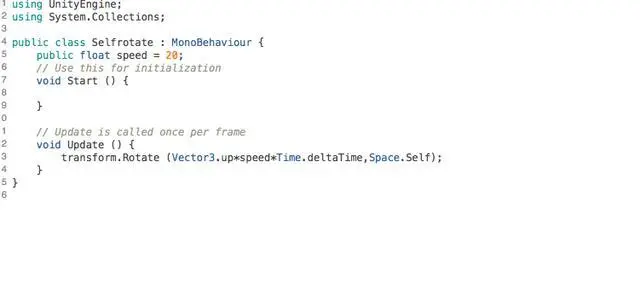 创建一个新的脚本并与恐龙模型绑定,实现其自动旋转。具体代码如下