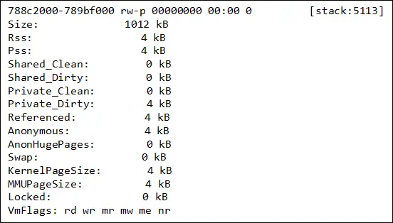 在smaps中,列出了进程的各个内存区域,并根据分配的不同用途做标识,以下是root用户使用cat /proc/ /smaps的一个例子:
