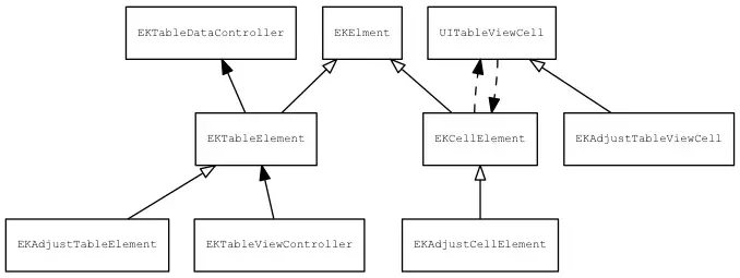 EKCellElement处理了一些cell会处理的常用业务逻辑。而每一种Cell都是一个独特的EKCellElement的子类去处理他独特的业务逻辑。具体可以通过下面的类图大概了解。