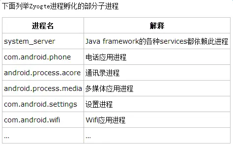 Zygote进程孵化出的第一个App进程是Launcher,这是用户看到的桌面App;- Zygote进程还会创建Browser,Phone,Email等App进程,每个App至少运行在一个进程上。