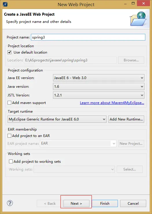 新建web project,下方选next: