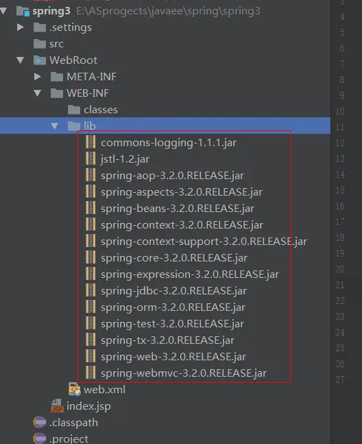 拷贝spring所需jar包到lib目录下