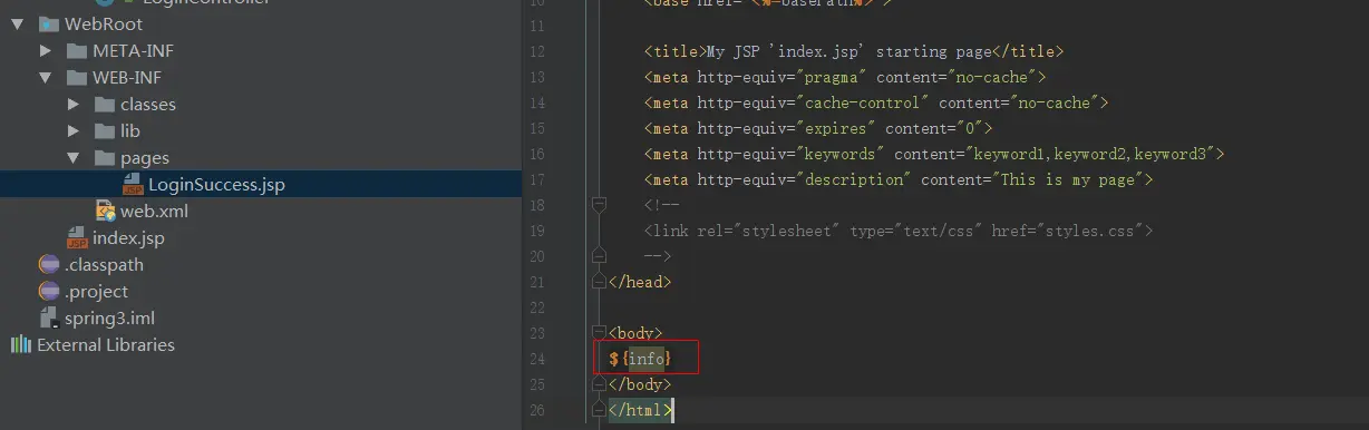 写LoginSuccess.jsp页面,从request域里拿数据: