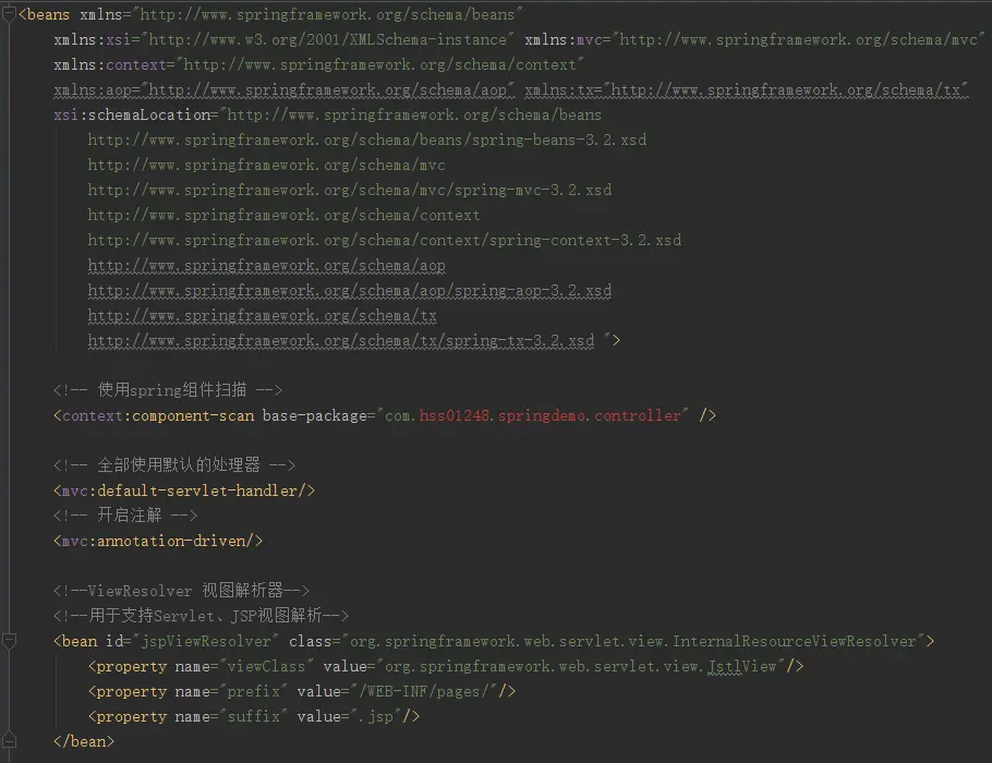 springmvc中的配置: