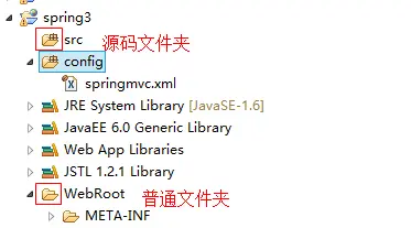 注意,指定spring的配置文件时,前面加classpath是指编译后在classes的根目录下,要达到这个目的,springmvc.xml的位置要在myeclipse中要指定为source folder: