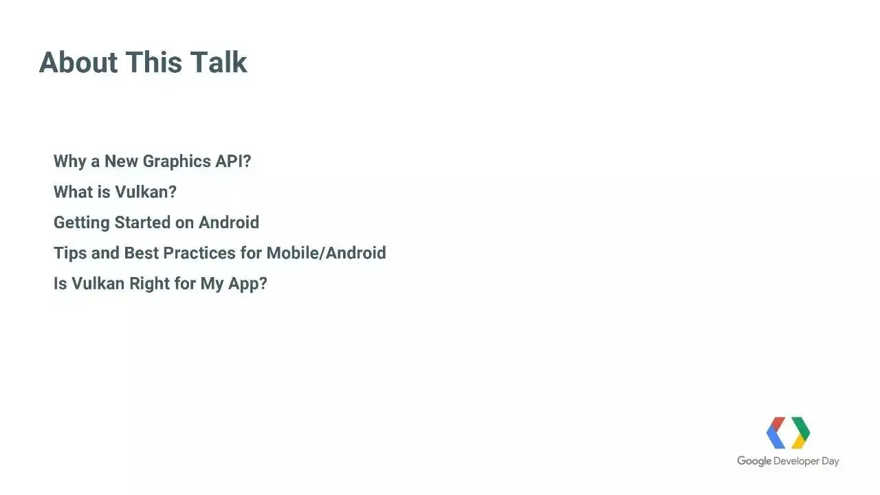 秉承着 Google 一贯的“开源精神”,我们决定陆续向 “谷歌开发者“ 微信公众号的订阅者分享: 2016 Google 开发者大会 6 个分会场 28 个主题的演讲 PPT。供所有中国开发者学习、分享、共同成长,希望您能从中获益 :-)