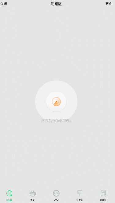 这里的展示内容是根据当前位置的经纬度坐标,按关键字去搜索周边的兴趣点,而关键字就是底部几个tab所标示的内容。点击底部tab即可以实现关键字的更新,重新发起搜索请求,实现UI更新。