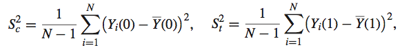 分别是潜在结果 Yi(0) 和 Yi(1) 的样本方差,而