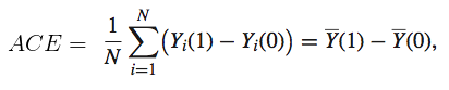 对 ACE 的一个很自然的估计量就是“treatment 组观测到的平均潜在结果 – control 组观测到的平均潜在结果”