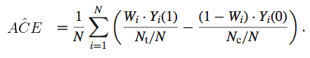 令指示变量 Wi 表示个体 i 被分派的处理(取值 0 或 1),估计量可改写为: