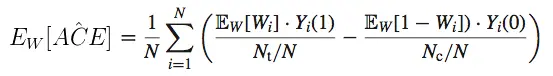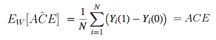 我们需要评估一下这个估计量的准确性,最基本的衡量标准就是它是否 ACE 的无偏估计,即该估计量的期望是否等于 ACE。