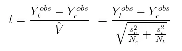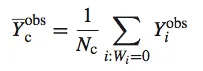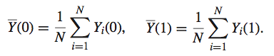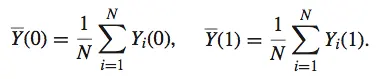 假设参与试验的 N 个用户中有 Nt 个分派到 treatment 组,Nc 个在 control 组,那么 treatment 组和 control 组的平均潜在结果分别是