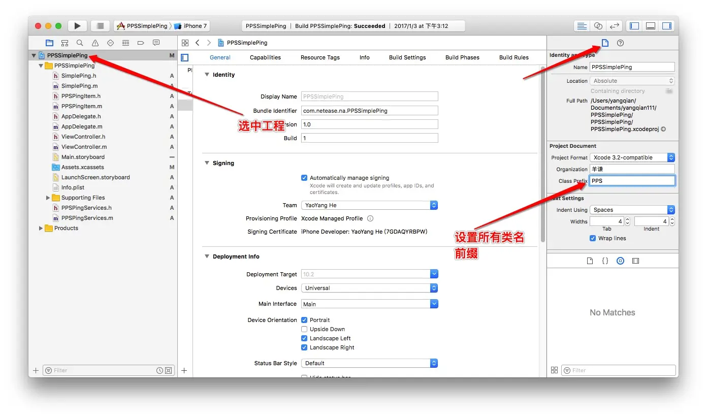 所以我们在编写类名时,一般都会加上跟自己工程相关的一些前缀,而且在xcode中是有一个功能,让我们在新建类时,自动给我们加上前缀: