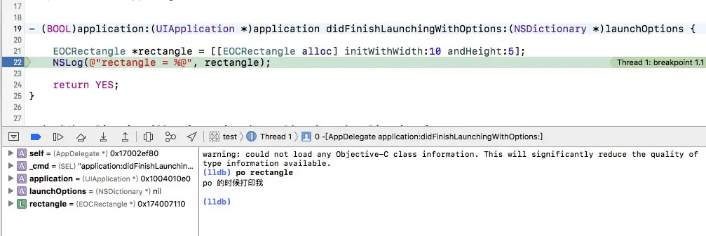 我们在类EOCRectangle重写了debugDescription方法,然后再控制台打印