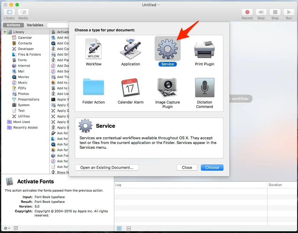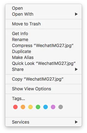 上图的右键菜单中最下方有一栏 Services 子选项,可以通过 Automator 的 Services 服务添加: