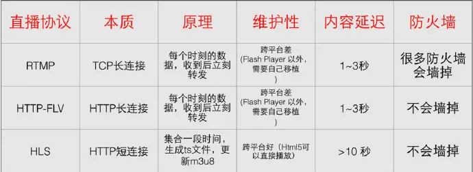 直播协议对比: