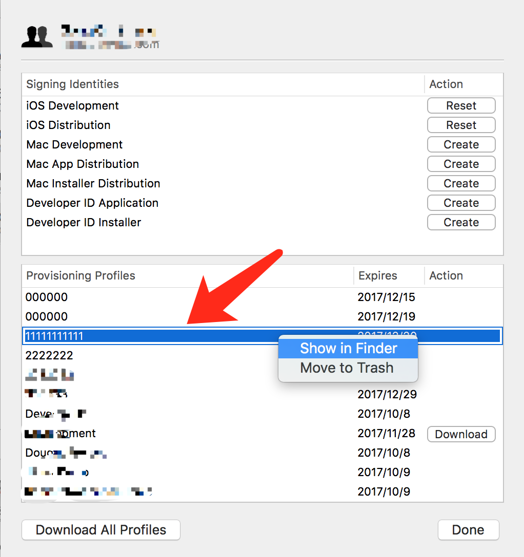 配置文件UUID可以在Xcode中查看,Xcode->Preferences...->Accounts,如下图: